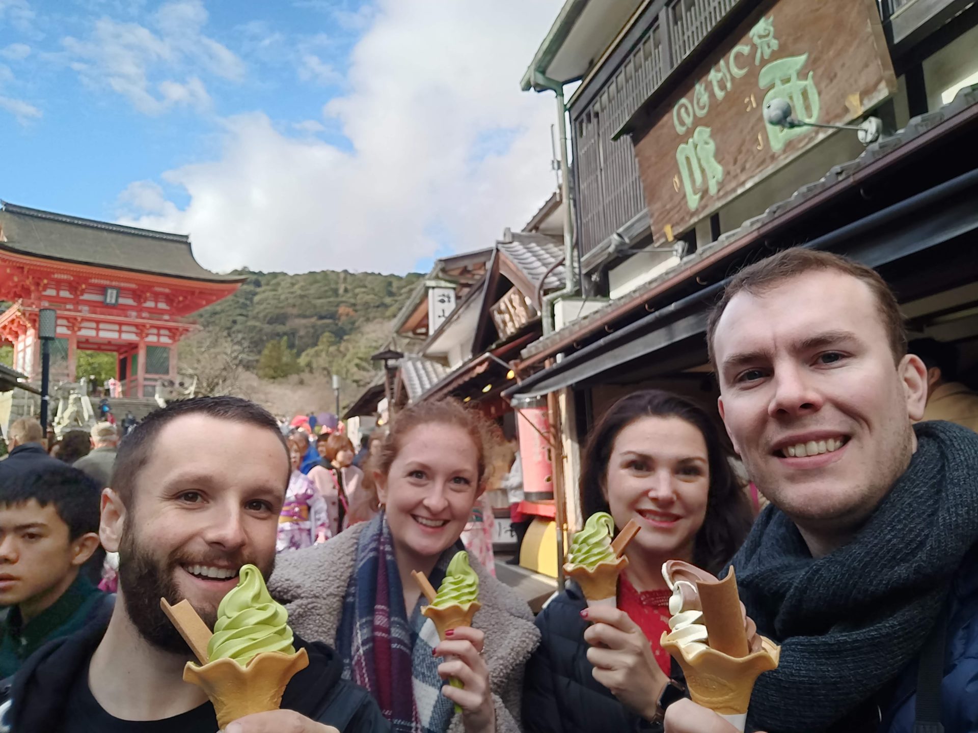 Eager to see as much as Kyoto as possible, we got up early and headed to the Fushimi-Inari Shrine. This was a definite highlight of the trip for me. Dozens of bright orange torii gates and shrines line the trail, as far as the eye can see. 1300 years old, the shrine is well preserved and a must visit in Japan. From here, we headed to Kiyomizu-dera Temple for a breathtaking view of the whole city, from two incredibly majestic shrines (arches) and a pagoda. We returned here later for an unforgettable sunset too.